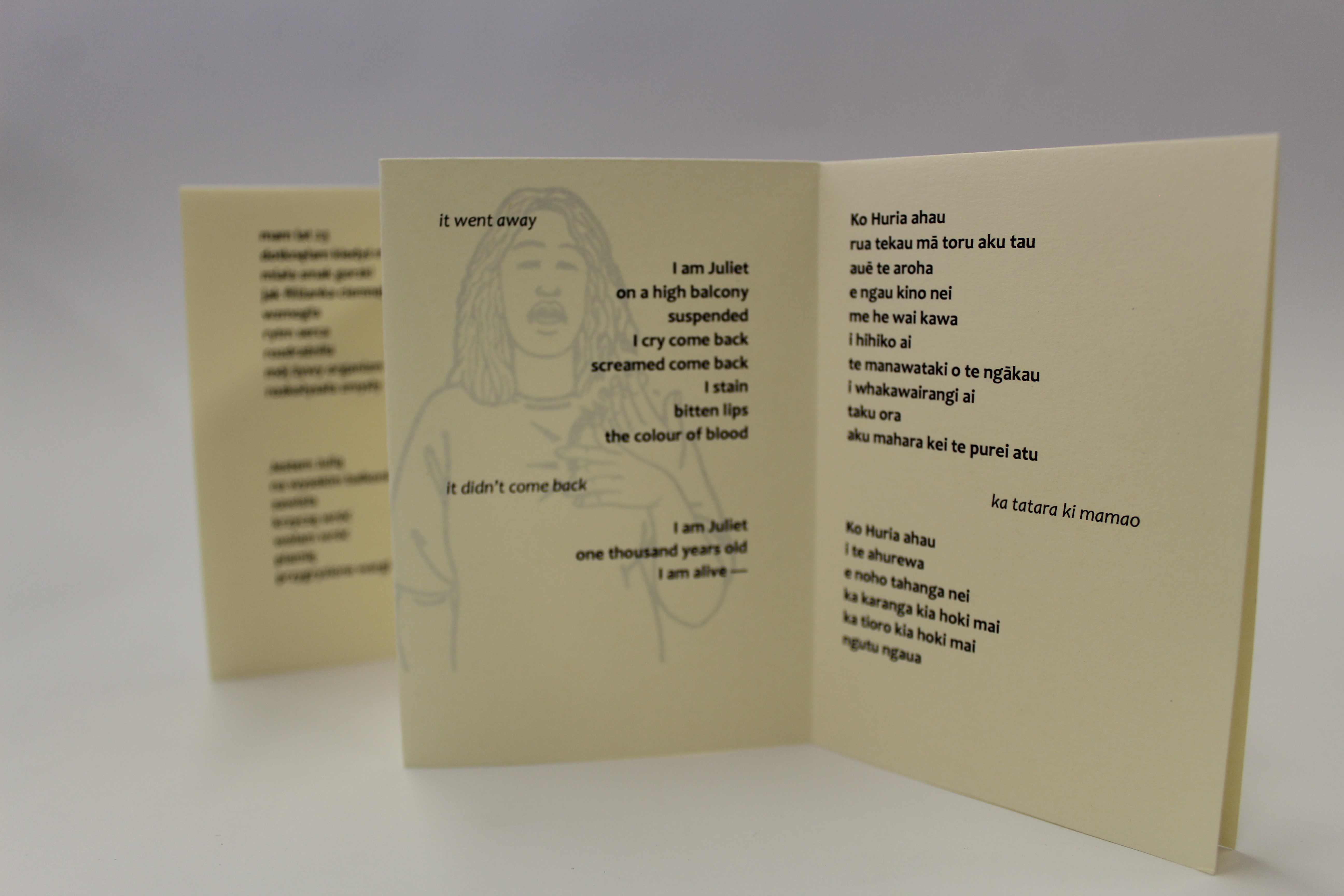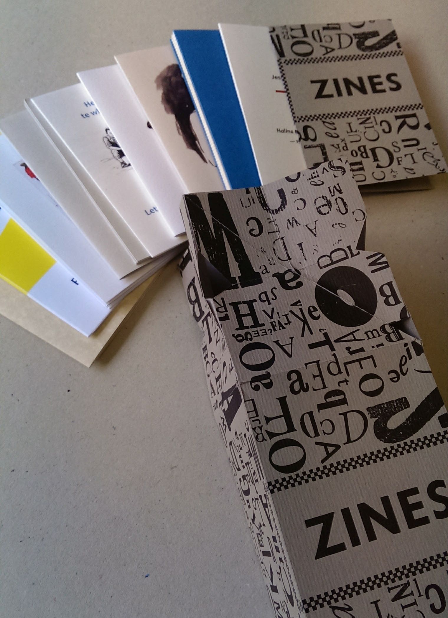 n. zine; colloq. shortened from magazine or fanzine: a self-published, small format work of limited circulation, often combining appropriated text and images, for a select audience. Inspired by a Lithuanian chocolate box and a pop-up gallery, this box of zines gathers together several occasional pieces featuring various forms of creative translation. Celebrated writers such as Dante, The Brothers Grimm, Einstein and Poswiatowska join New Zealand artists Sarah Laing, Ant Sang, Ashley Brown and Barbara Strathdee as well as translation specialists Hone Apanui, Nora Guzu, Bill Manhire and Courtney Sina Meredith. Taste our collection and enjoy!